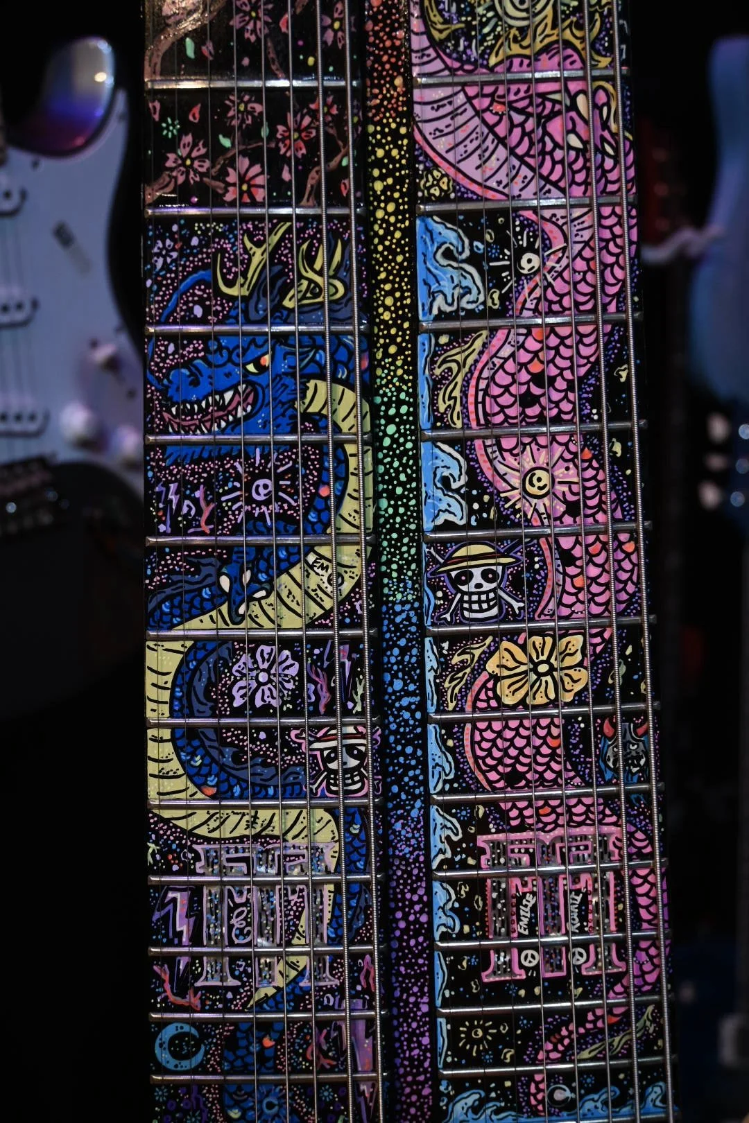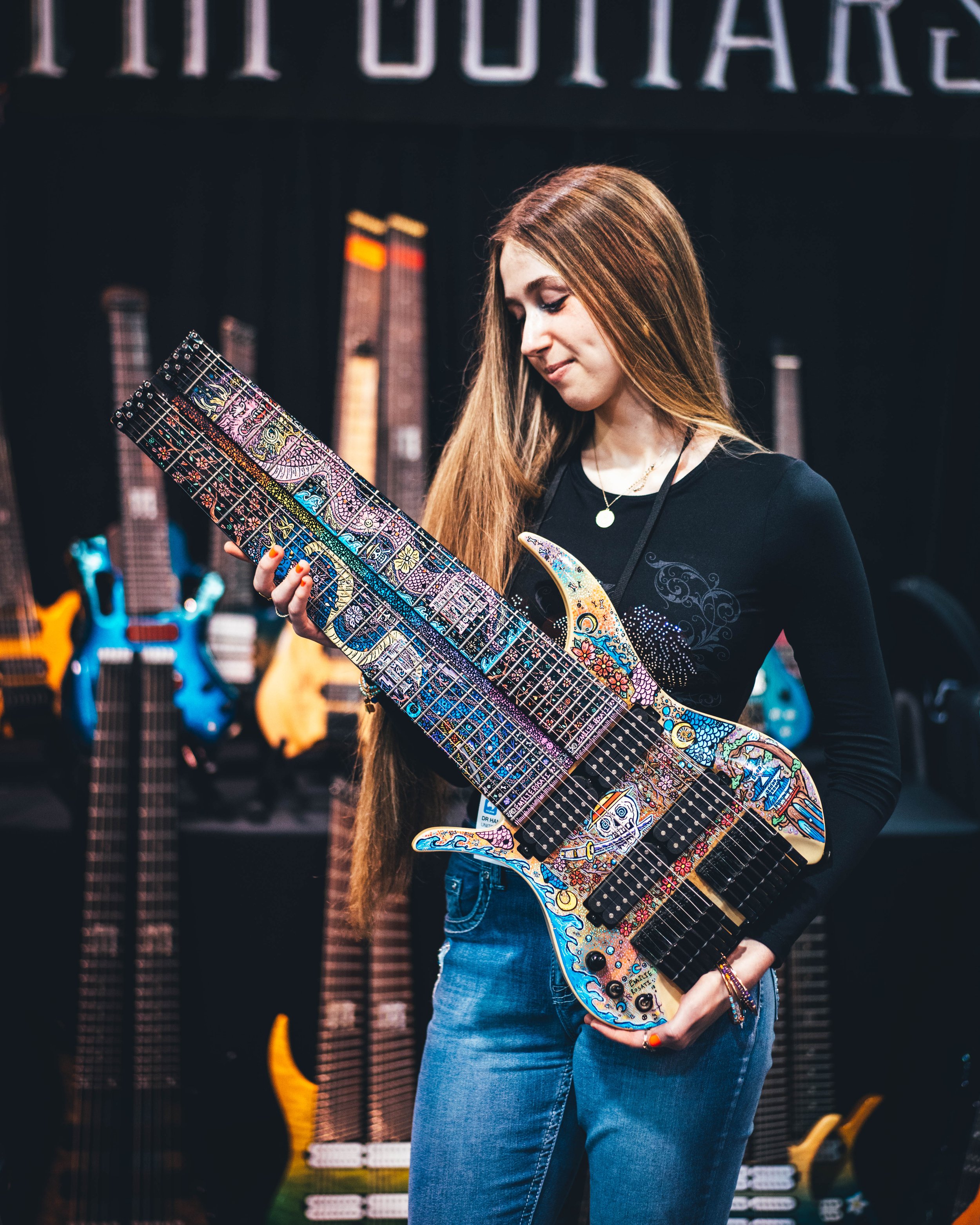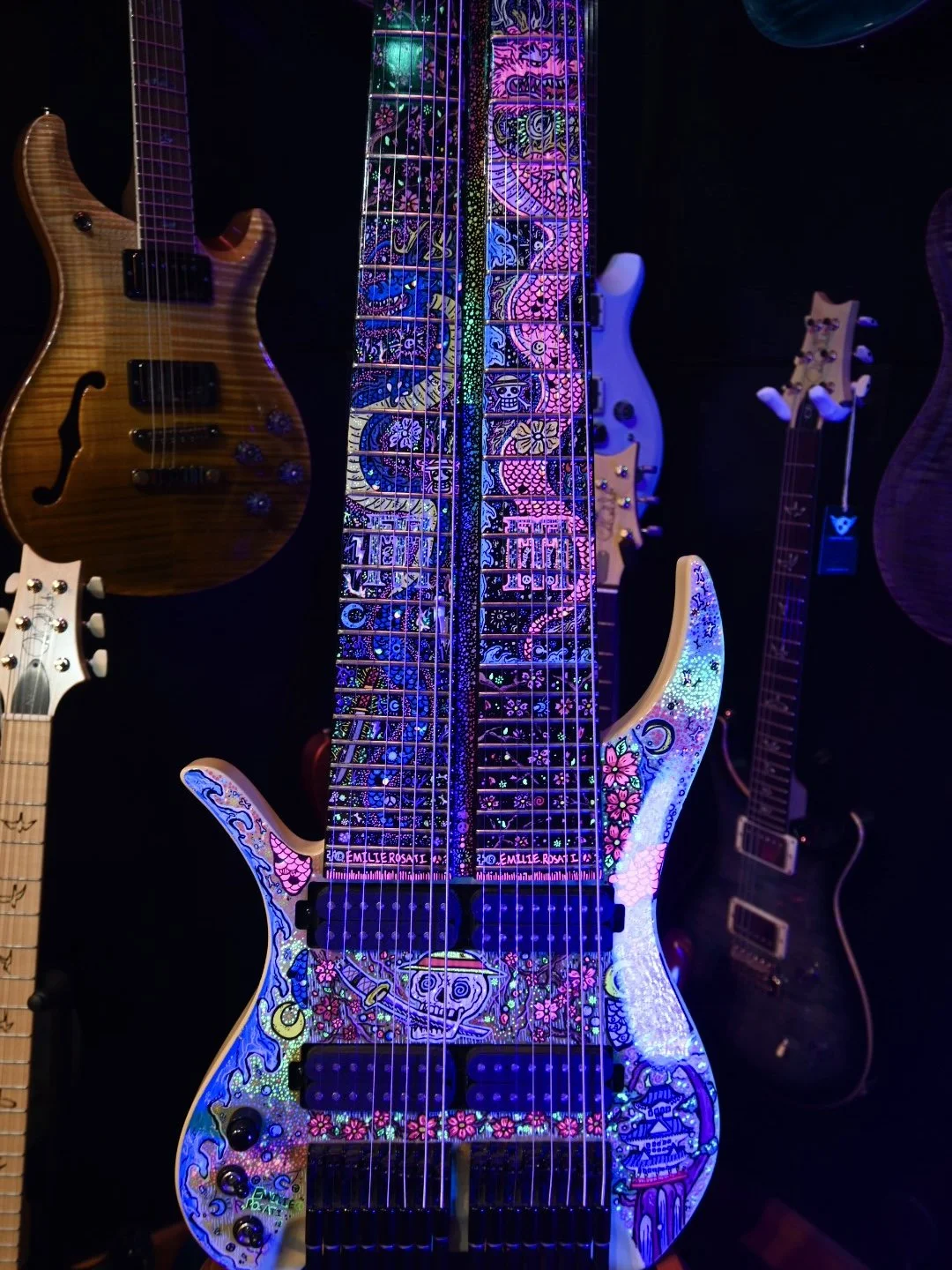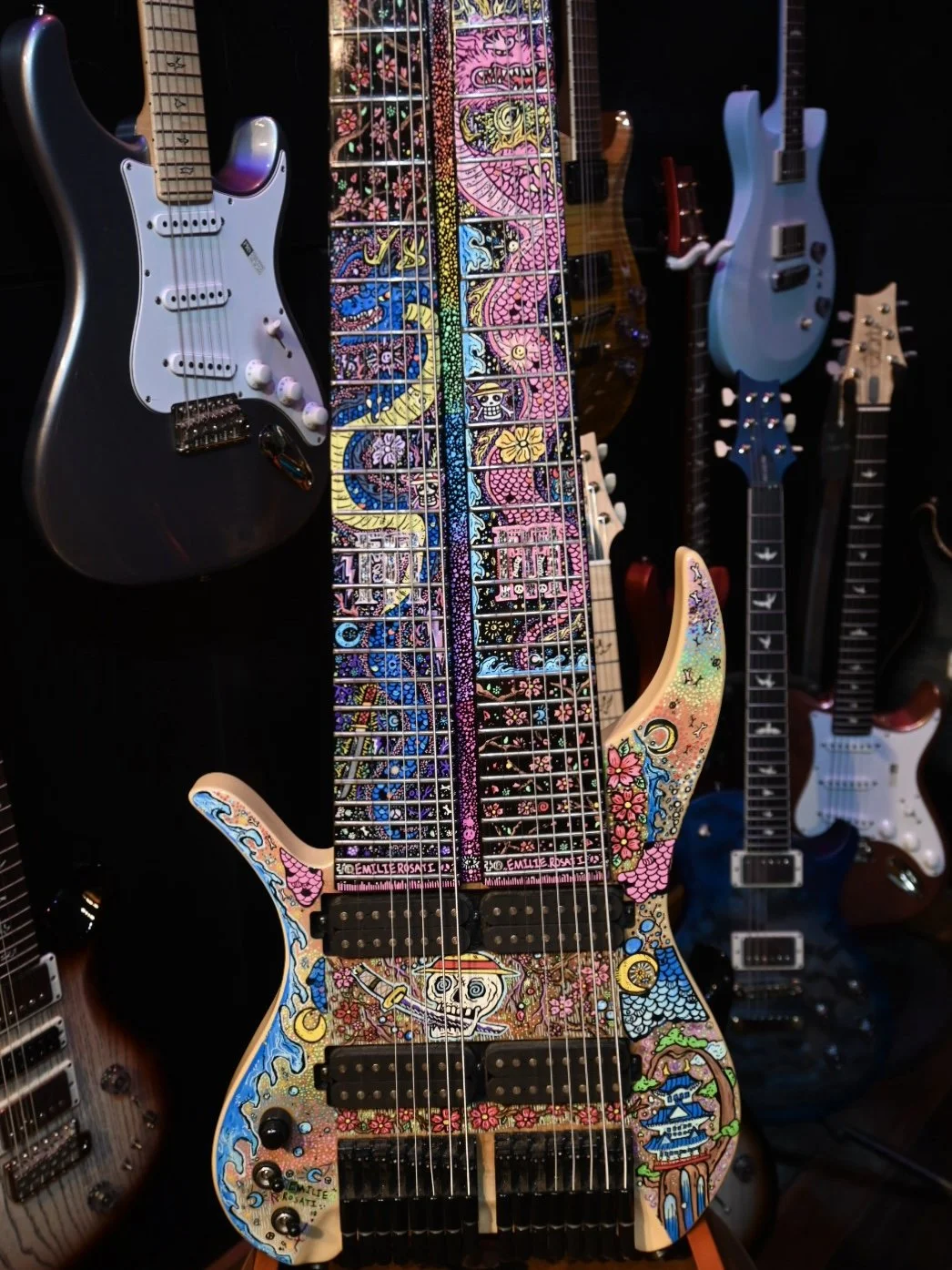 Hand-painted FM Guitar Created by Artist Emilie Rosati. This piece was created for Felix Martin of FM Guitars and was showcased at NAMM 2026!